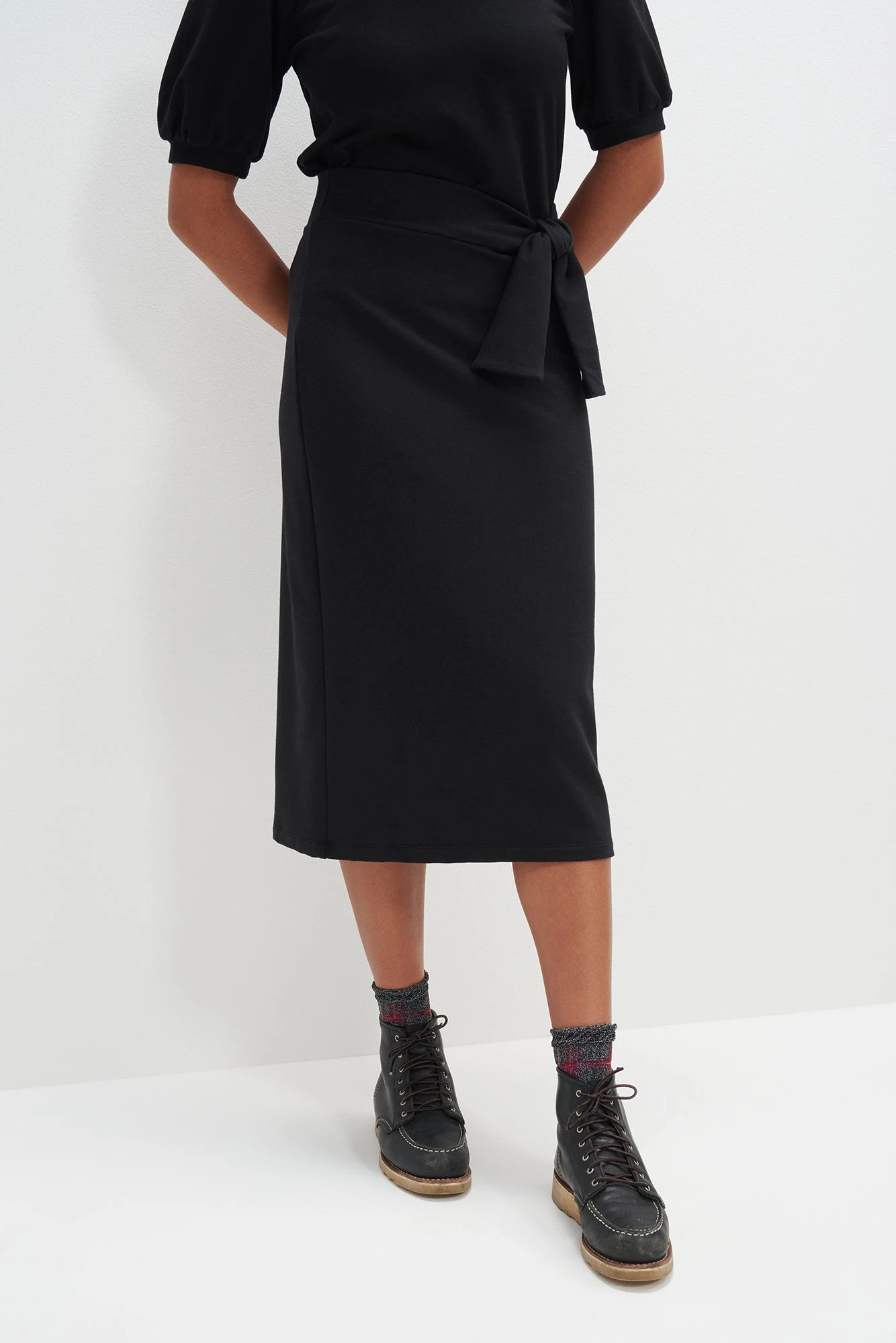 High waisted midi skirt with an adjustable waist tie. Made in Reverie Terry, our softest blend of Organic Cotton and Modal.