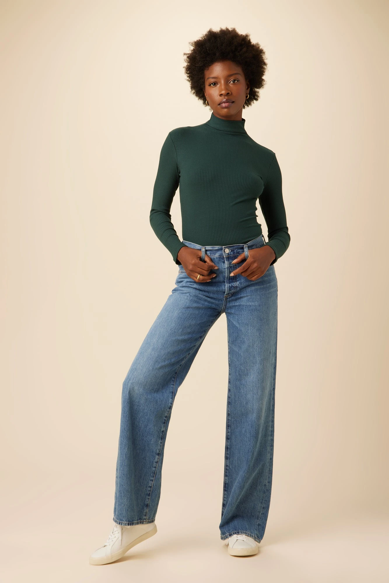 - This trouser inspired silhouette is designed to sit high on the waist with a flattering, ultra-relaxed wide-leg, made from non-stretch organic denim.