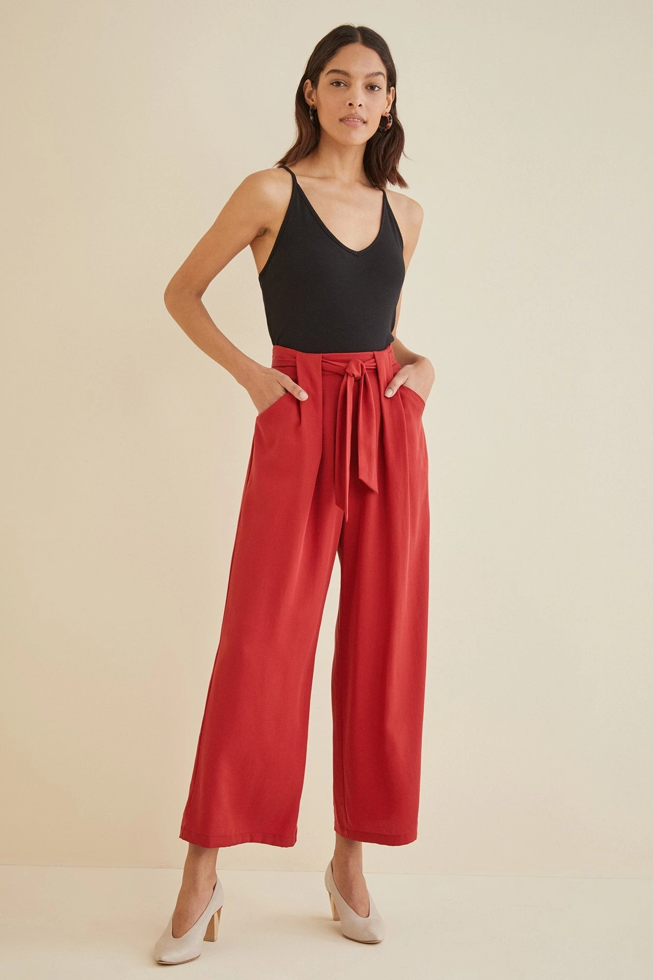 Made from an ultra-smooth twill with a soft drape, these pleated wide-leg crops have an invisible side zipper, front pockets, and an adjustable tie waist.