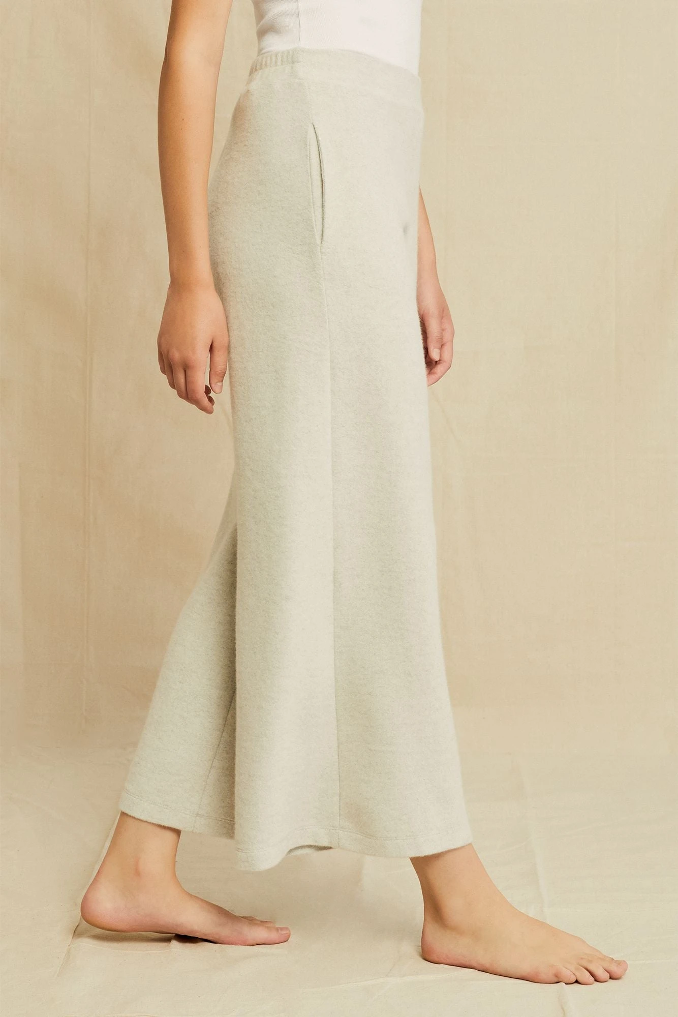 - Mid-rise height with a cropped wide leg