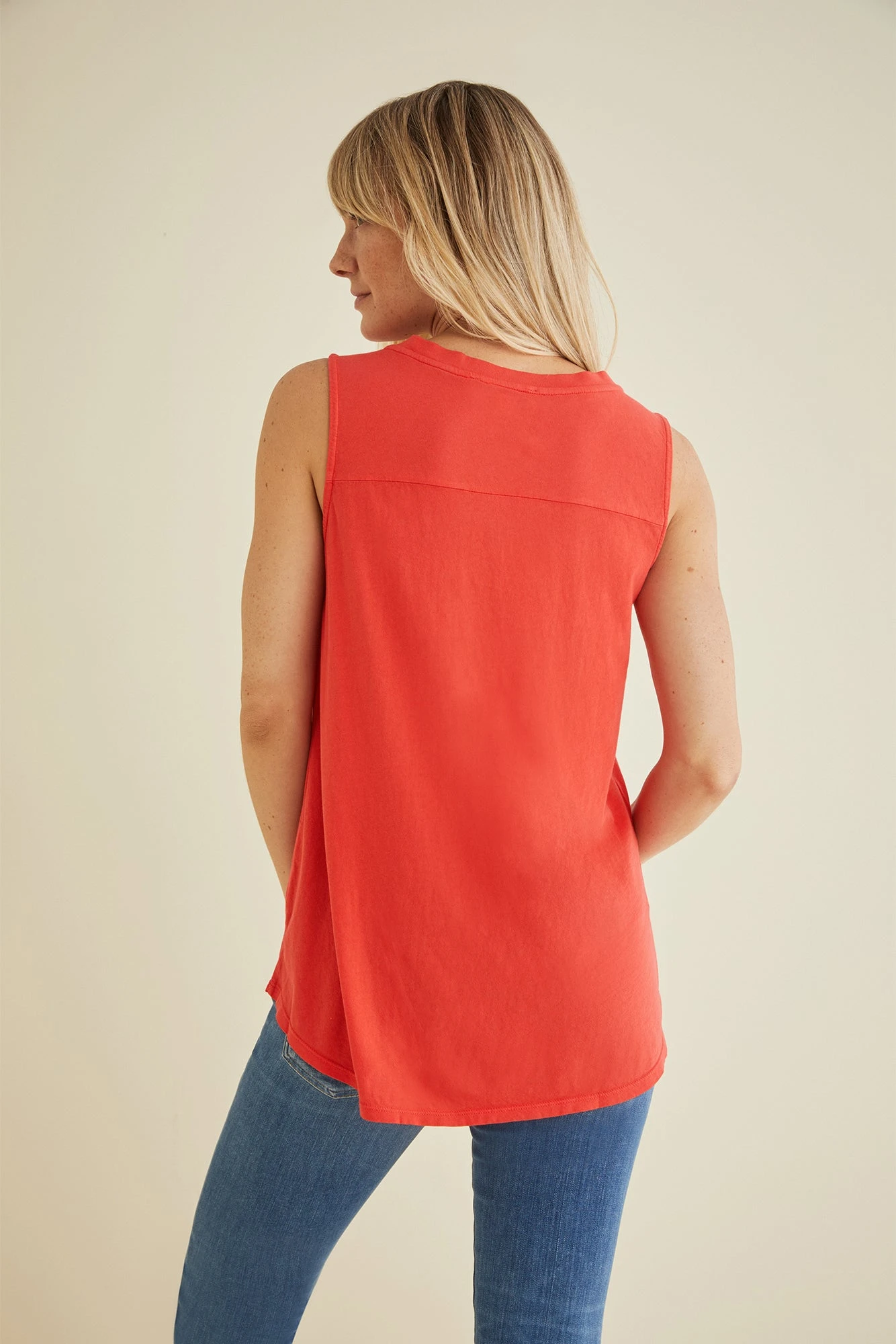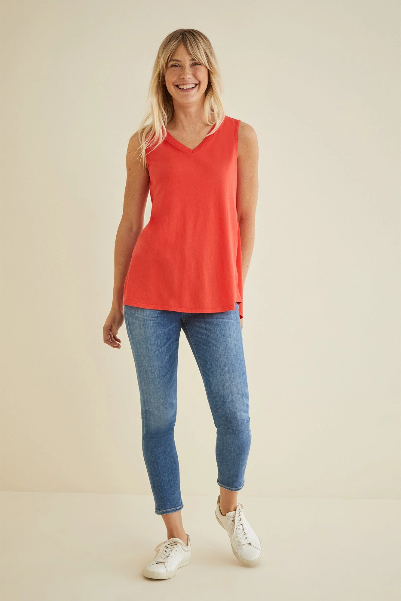 Sleeveless v-neck tank with a slouchy, swing silhouette. Made from our soft and durable organic cotton jersey.