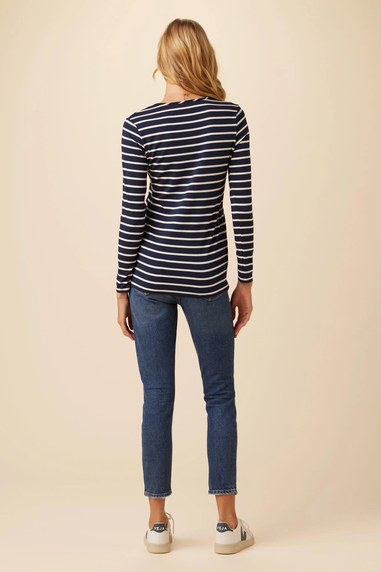 Long sleeve tee with an open neck and shirt-tail hem. A great layering piece made from our softest Dream Knit, this basic can be rotated through your wardrobe all year long.