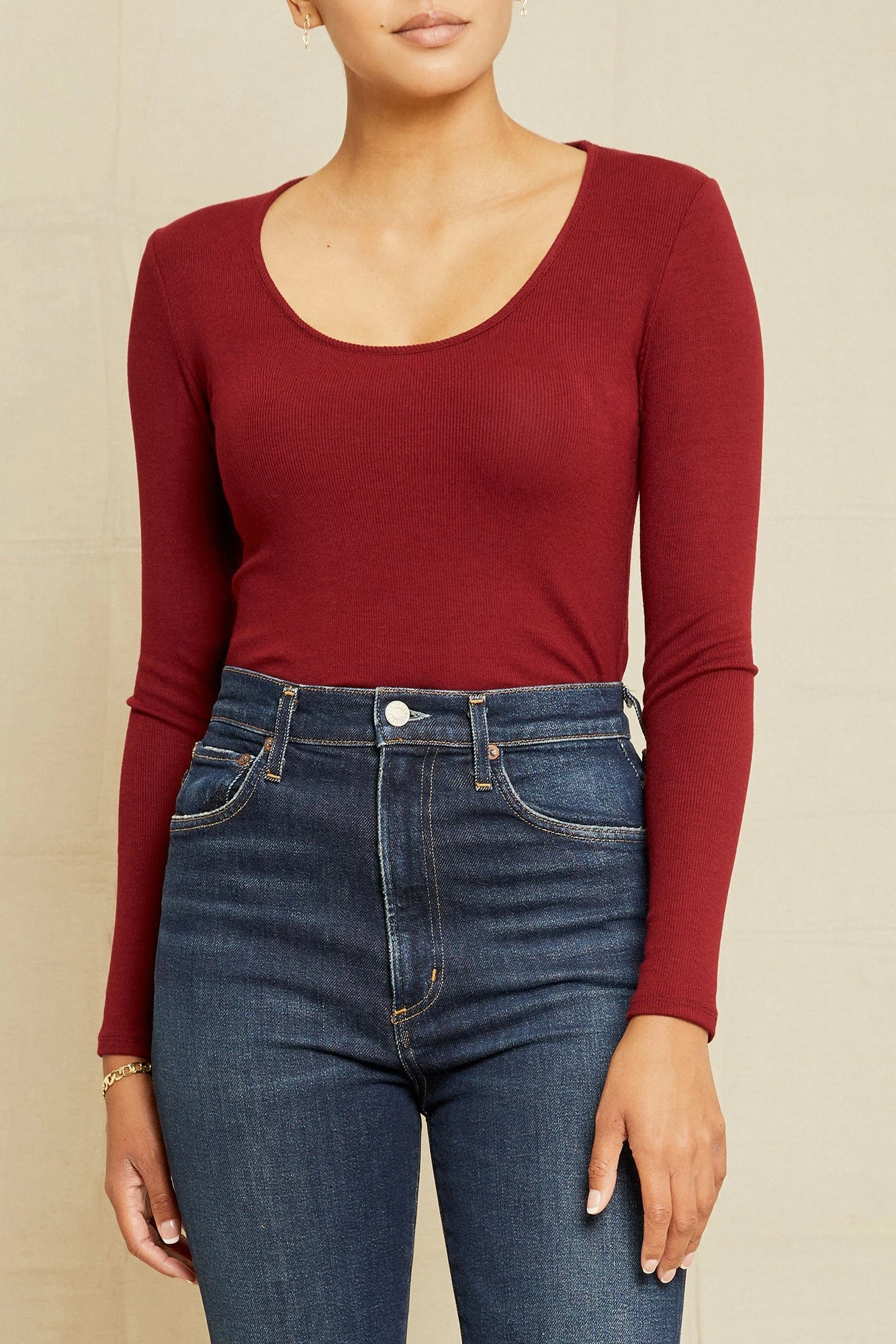 Long sleeve tee with an open neck and shirt-tail hem. A great layering piece made from our lightweight, ultra-soft Dream Rib fabric.