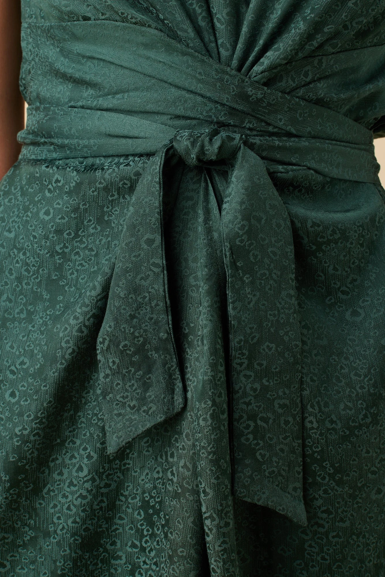 Cap-sleeve midi featuring v-neck line, pockets, and an attached waist wrap tie, made from our silky soft Cupro Viscose fabric.