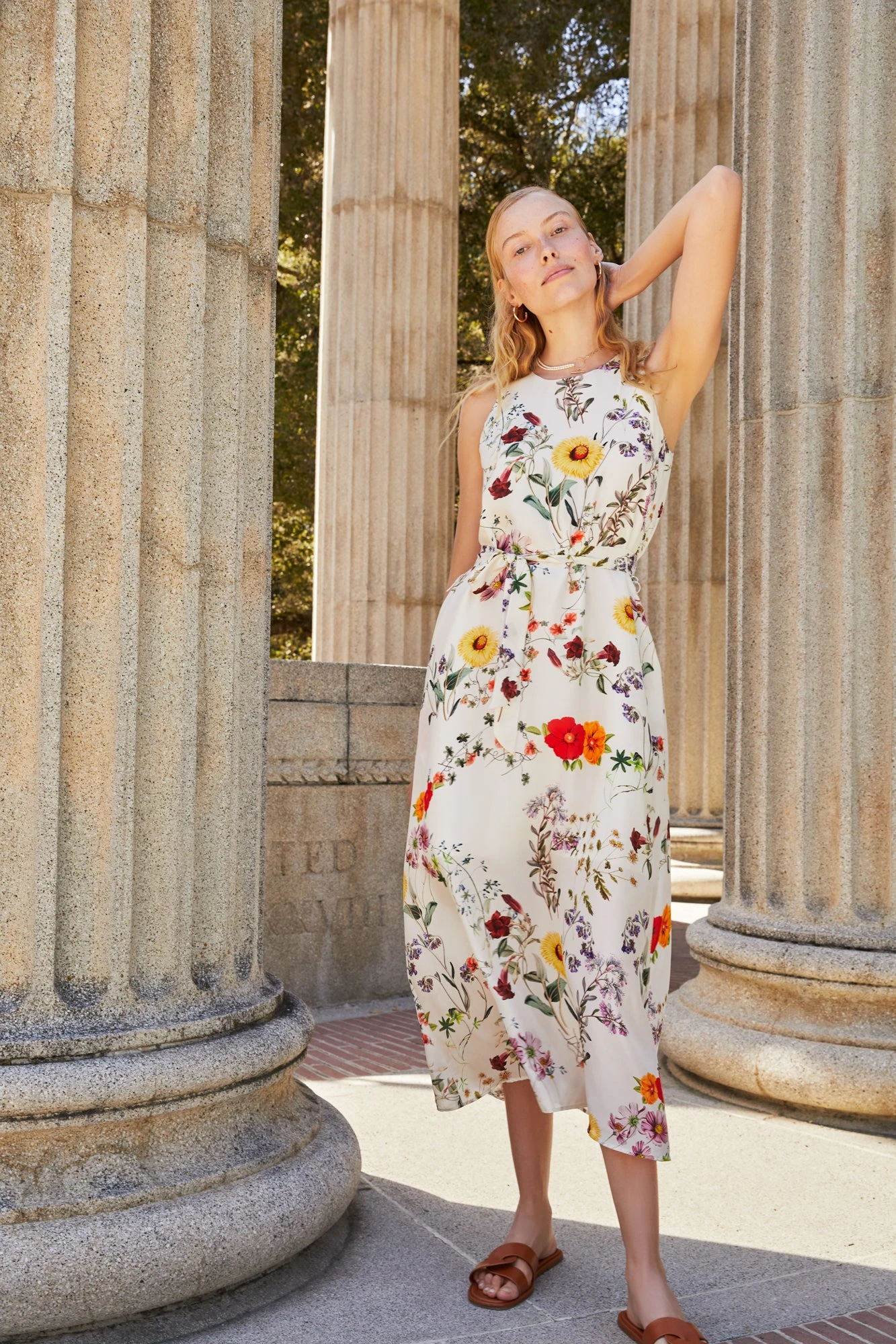 Relaxed fit maxi dress that features a crew neckline, pockets and detachable waist tie, made from our signature Washable Silk.