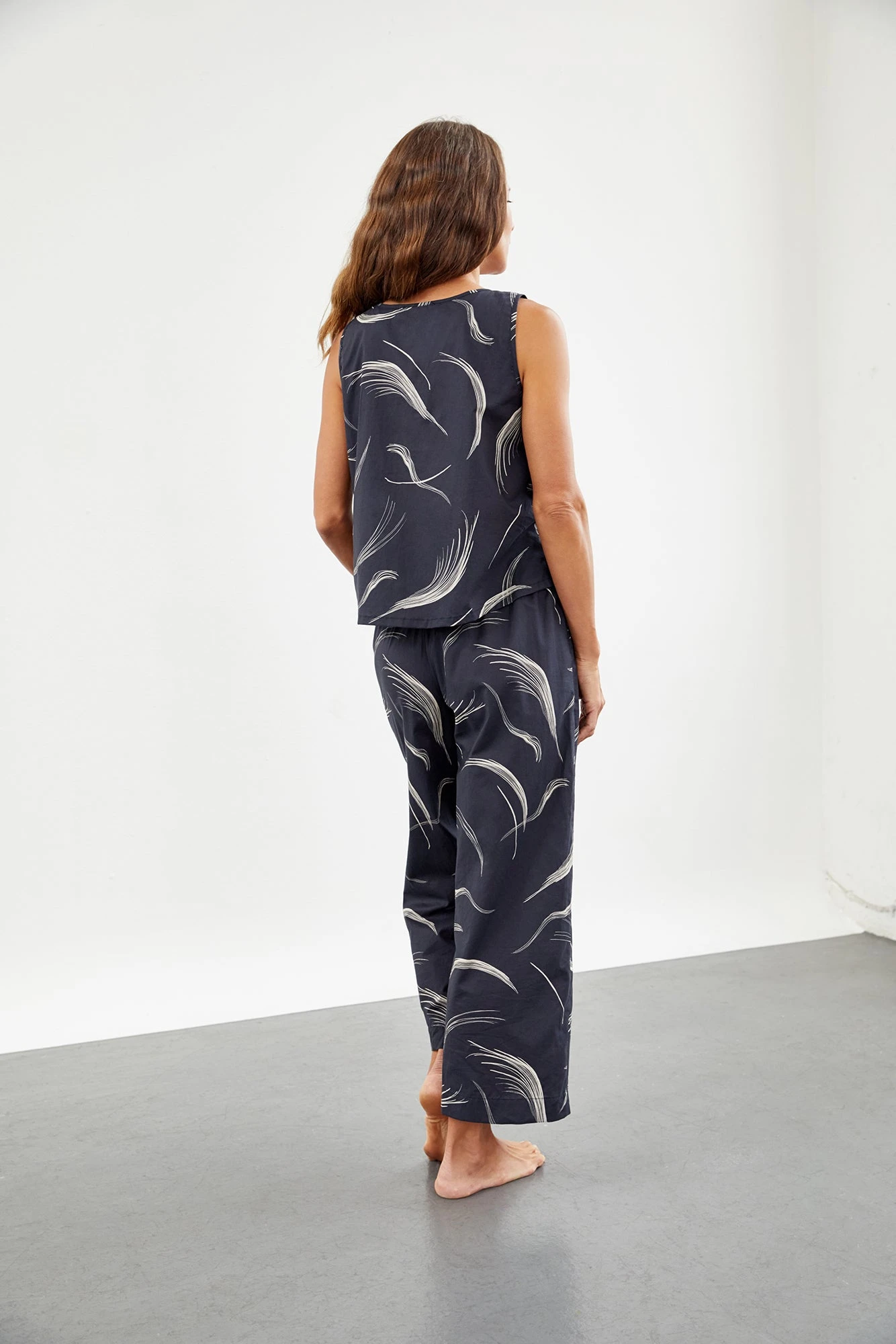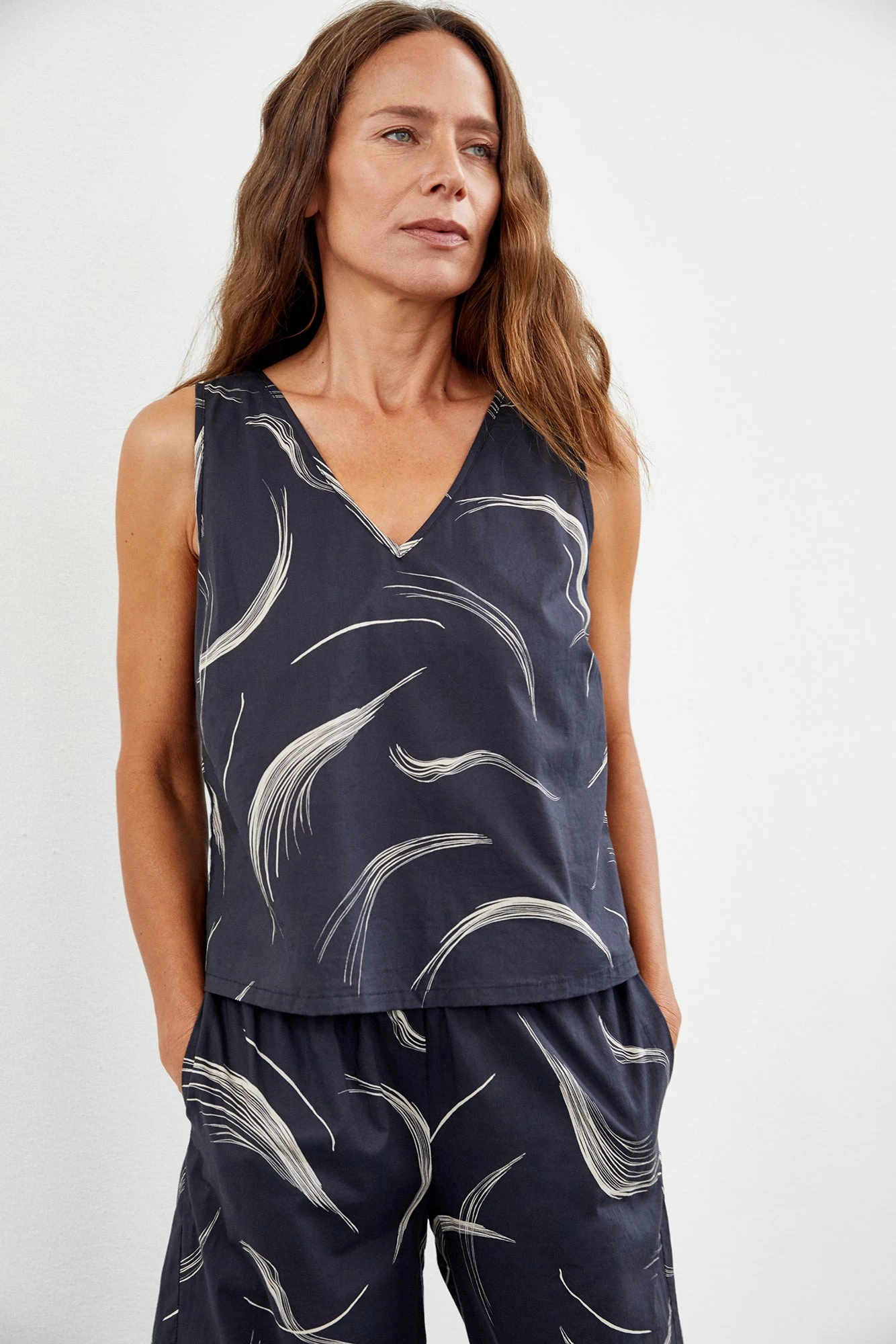 Pajama style tank with a v-neck and loose body. Made from our soft and lightweight organic cotton, perfect for lounging.Â