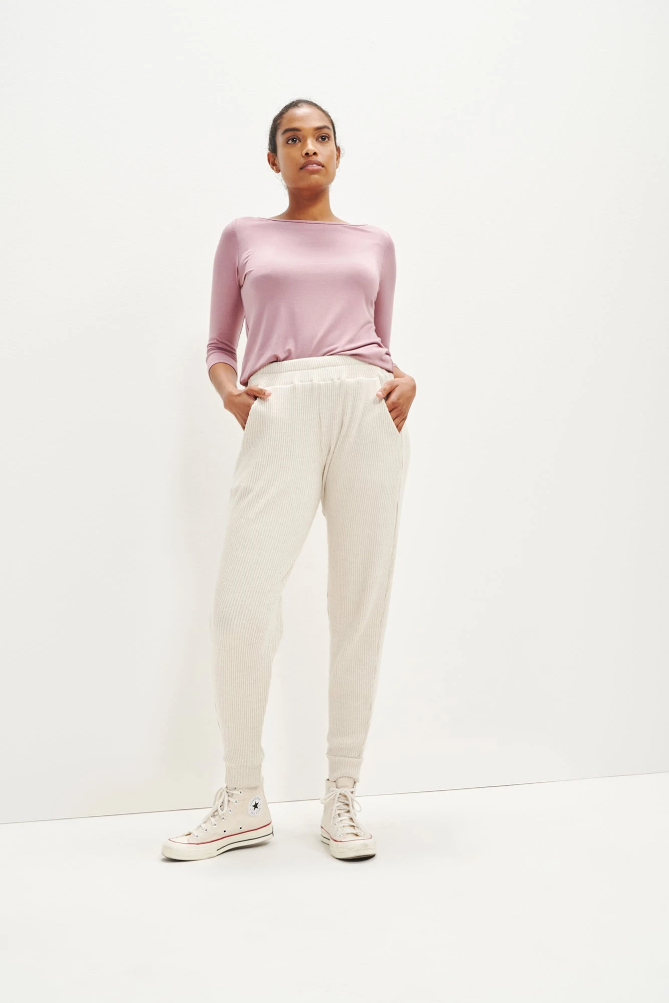 Our best-selling jogger pants now updated in our soft and lightweight linen rib fabric. Skylar features an easy, relaxed silhouette, stretch waist, and side seam pockets.