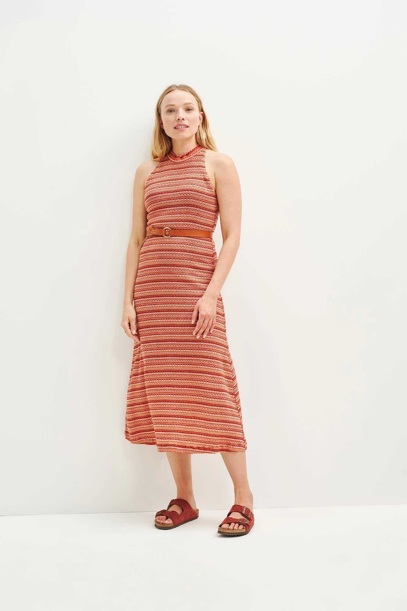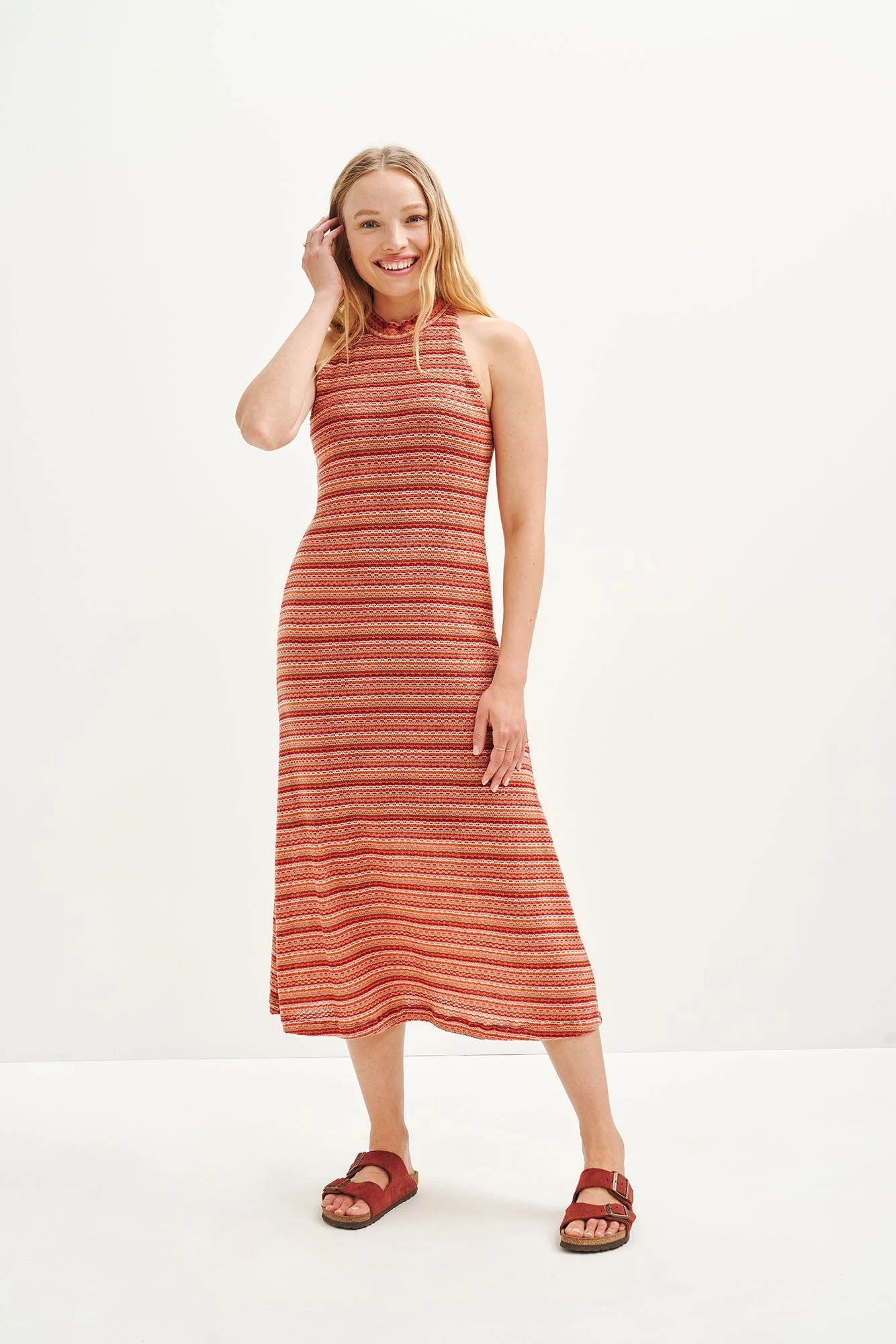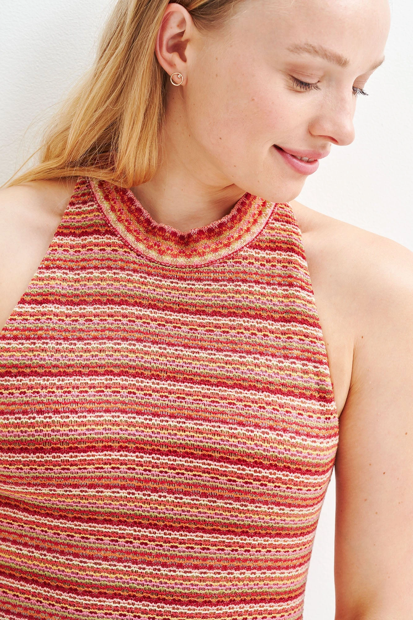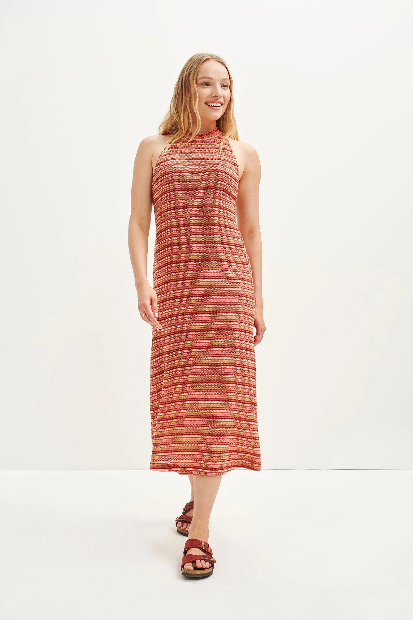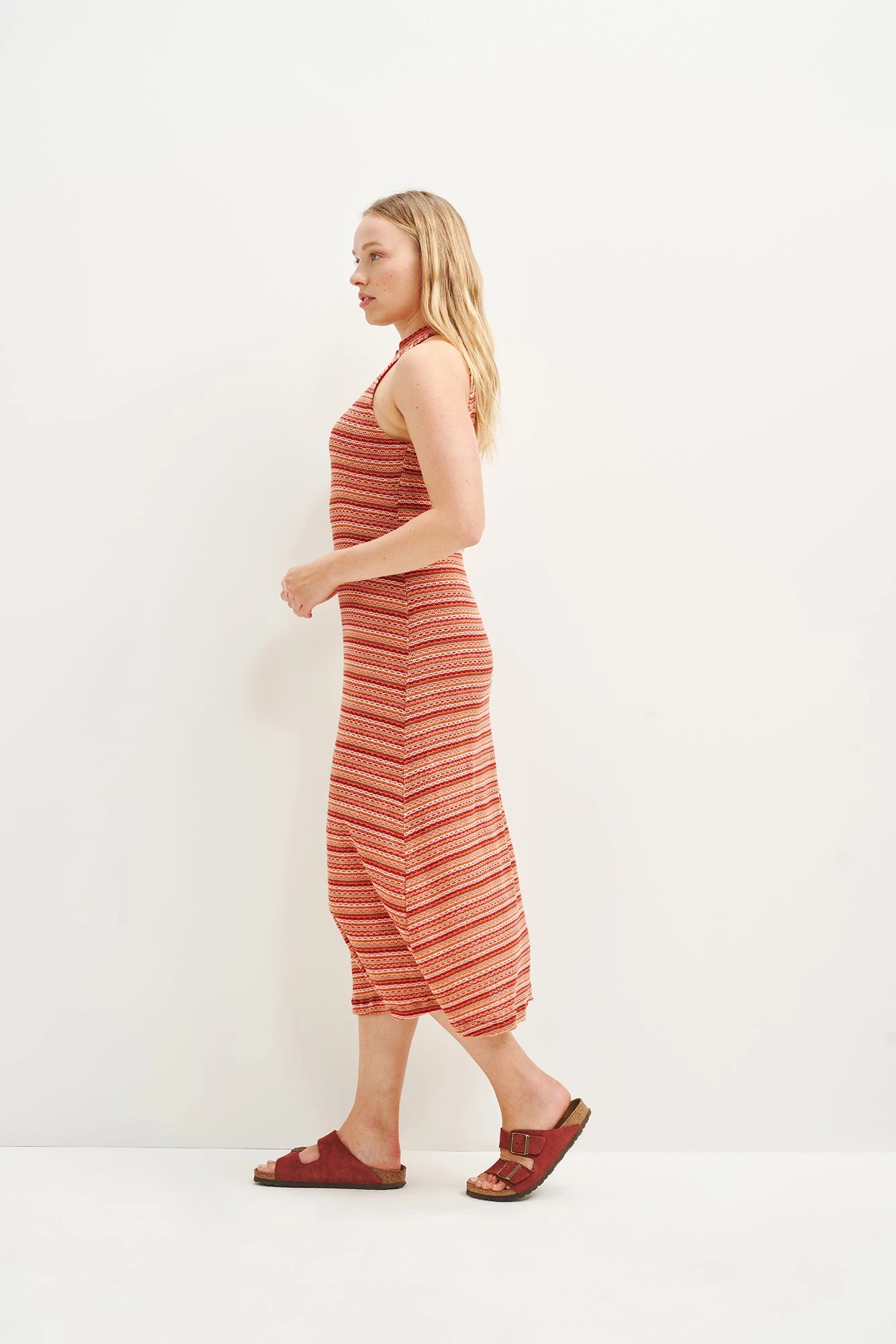 Made from upcycled and repurposed fabrics, this sultry sleeveless style is as flattering as it is comfortable.